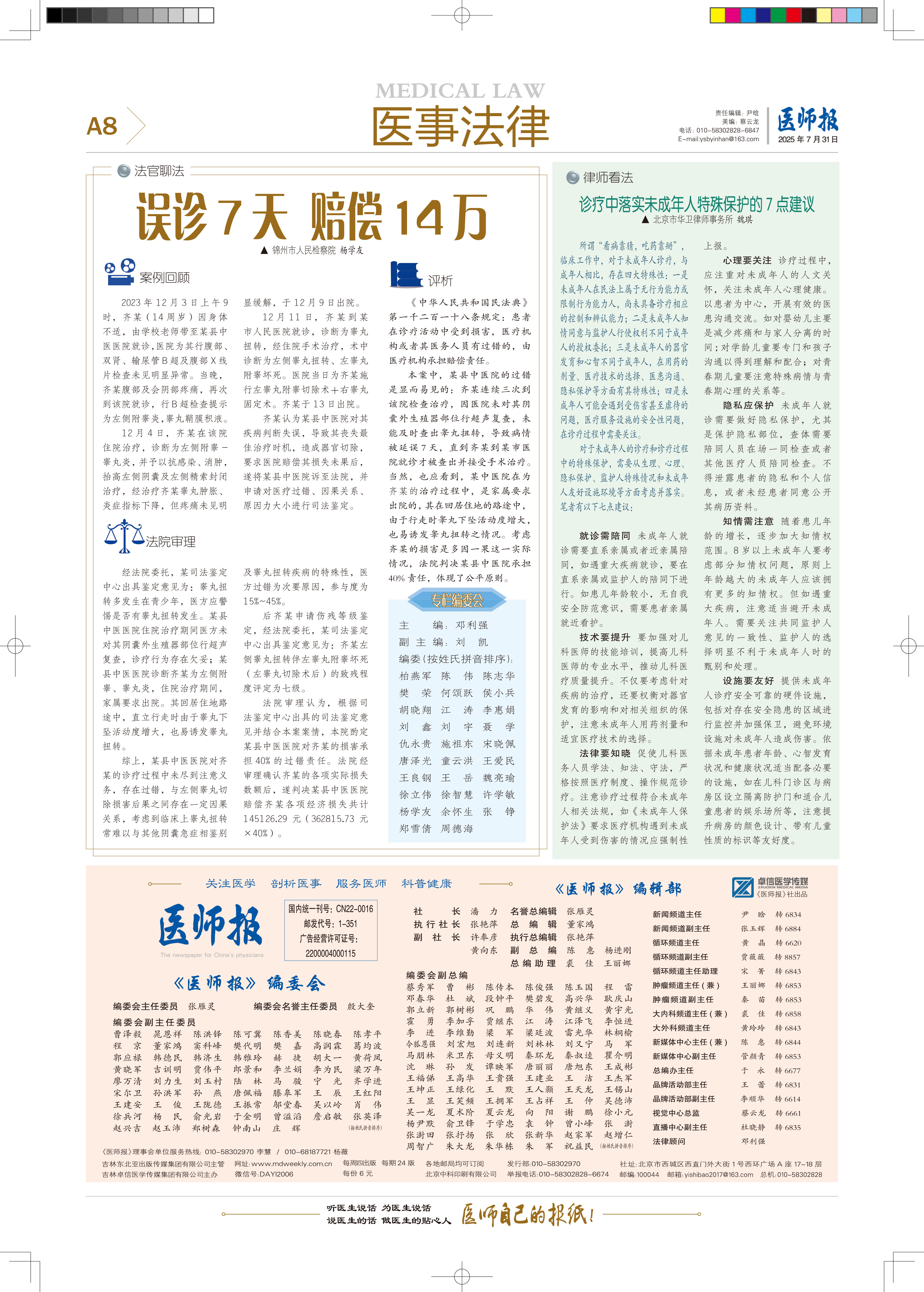 [法律大讲堂] 行政处罚不应影响尊医重卫
